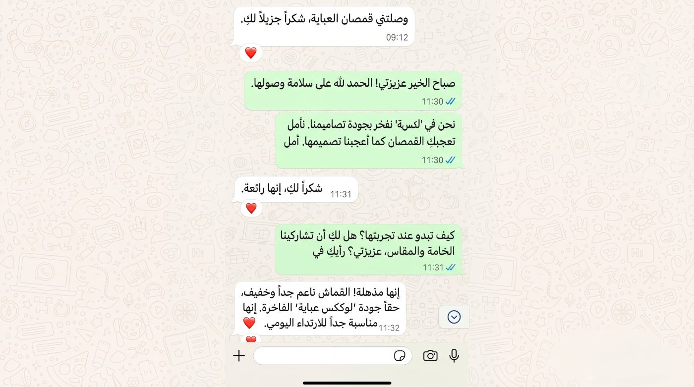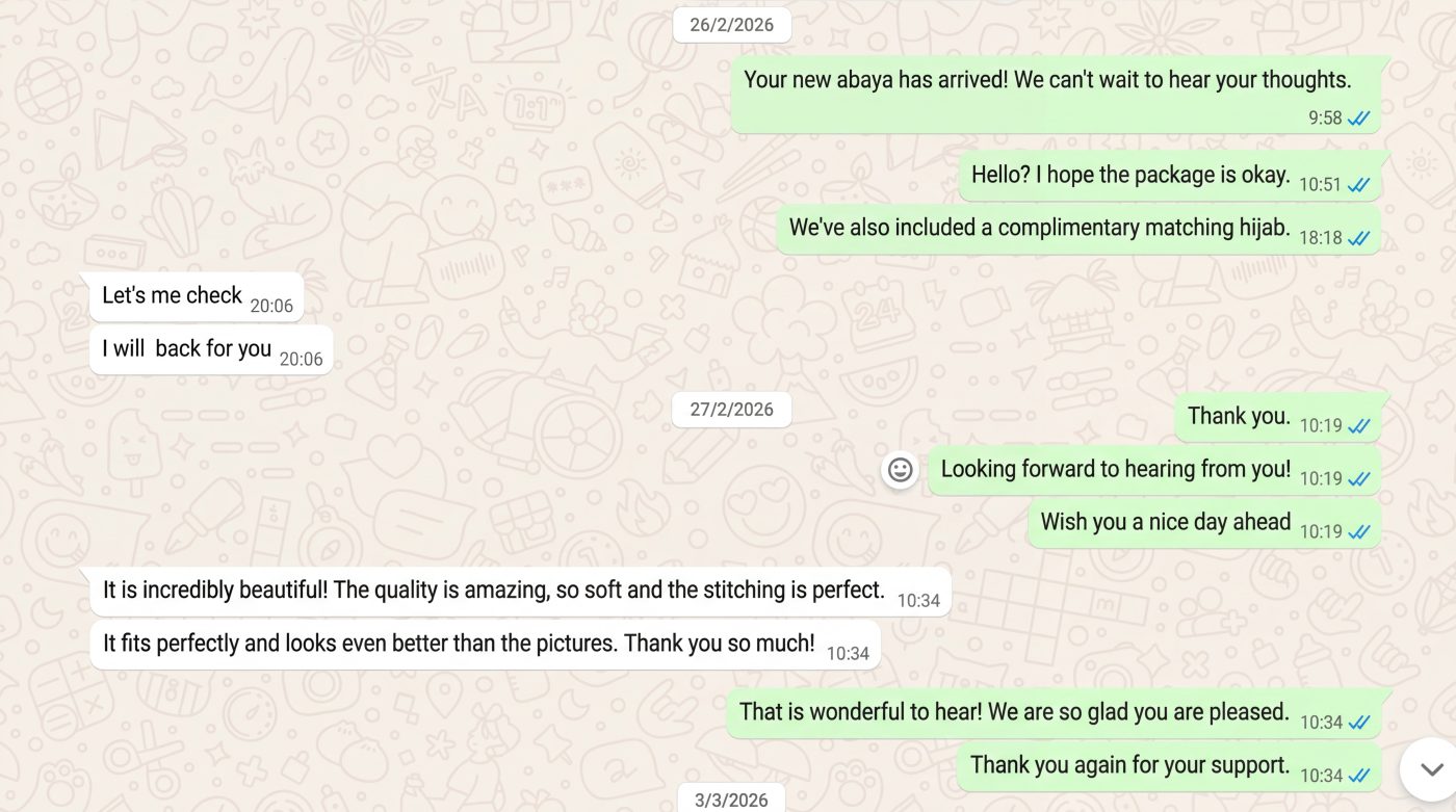 We believe that an abaya is not just a garment, it is a reflection of elegance, identity, and inner beauty. Every piece we create is designed to make the wearer feel graceful, attractive, refined, and effortlessly luxurious.