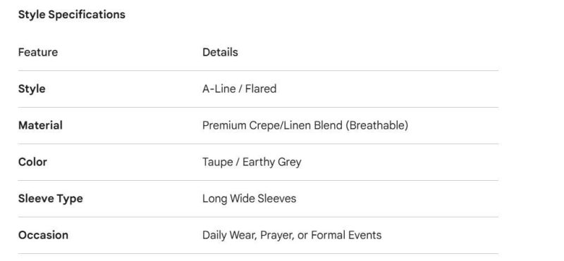 A-Line Cut: A timeless silhouette that suits all body types, offering a modest yet structured look.