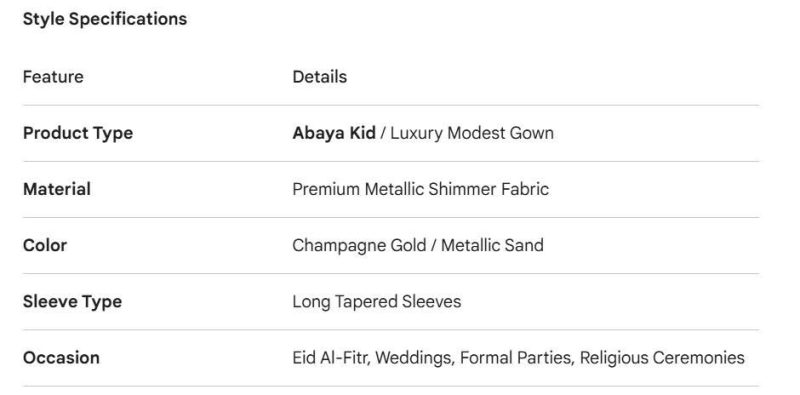 Be the first to review “Shimmering Metallic Gold Abaya Kid – Luxury Eid & Party Wear for Girls”
